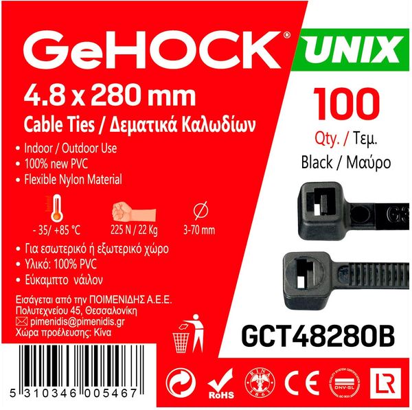 ΔΕΜΑΤΙΚΑ ΣΕ ΜΑΥΡΟ ΧΡΩΜΑ 4.8X280MM 100 ΤΕΜ. GEHOCK 148280
