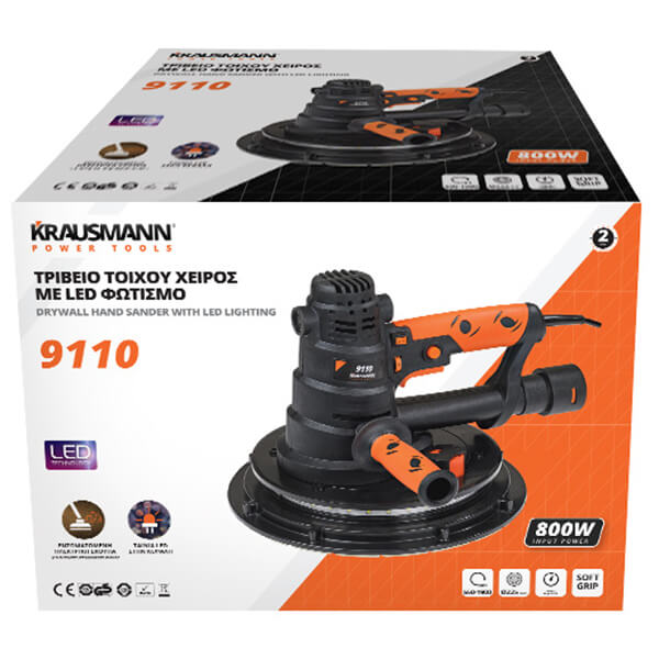 ΤΡΙΒΕΙΟ ΤΟΙΧΟΥ KRAUSMANN 800WATT LED ΦΩΤΙΣΜΟ + ΣΑΚΟΥΛΑ ΣΚΟΝΗΣ ΡΥΘΜΙΣΗ ΣΤΡΟΦΩΝ 9110