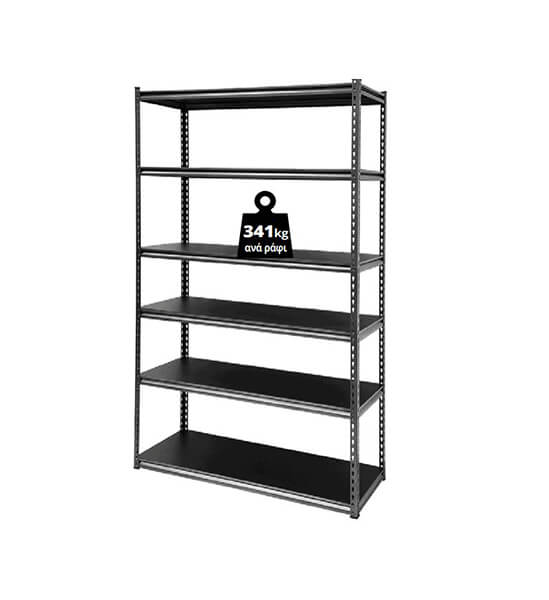 ΡΑΦΙΕΡΑ ΜΕΤΑΛΛΙΚΗ ΜΕ 6 ΡΑΦΙΑ ΜΕΛΑΜΙΝΗΣ HEAVY DUTY TACTIX 122Χ46Χ213CM 341KG 329010Β