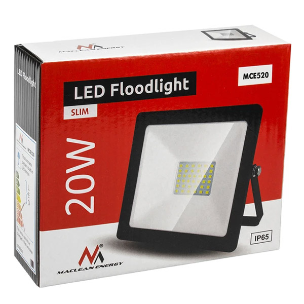 MACLEAN ENERGY MCE520 LED SLIM 20W FLOODLIGHT, 1600LM IP65, PREMIUM