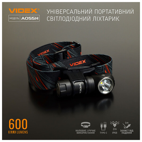 VIDEX ΕΠΑΝΑΦΟΡΤΙΖΟΜΕΝΟΣ ΦΑΚΟΣ ΧΕΙΡΟΣ-ΚΕΦΑΛΗΣ 600LM IP68