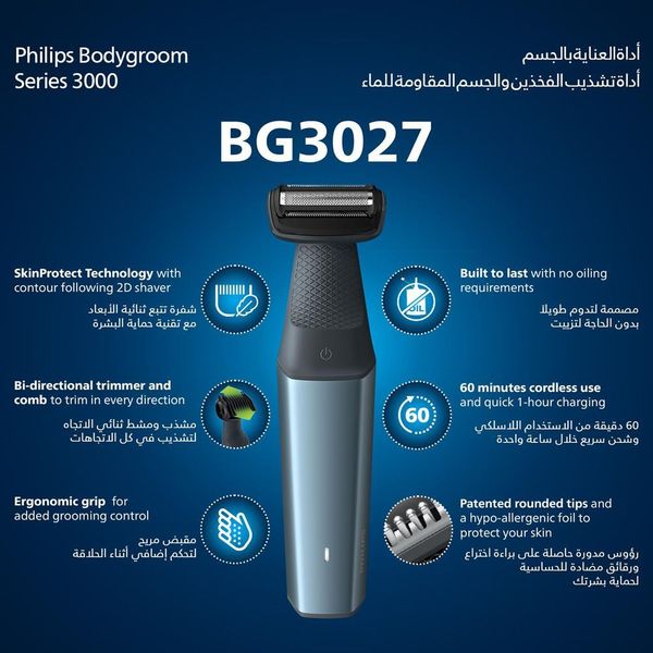 ΞΥΡΙΣΤΙΚΗ ΜΗΧΑΝΗ PHILIPS BG3027/05 BODY GROOMER/SHAVER BLUE BLACK