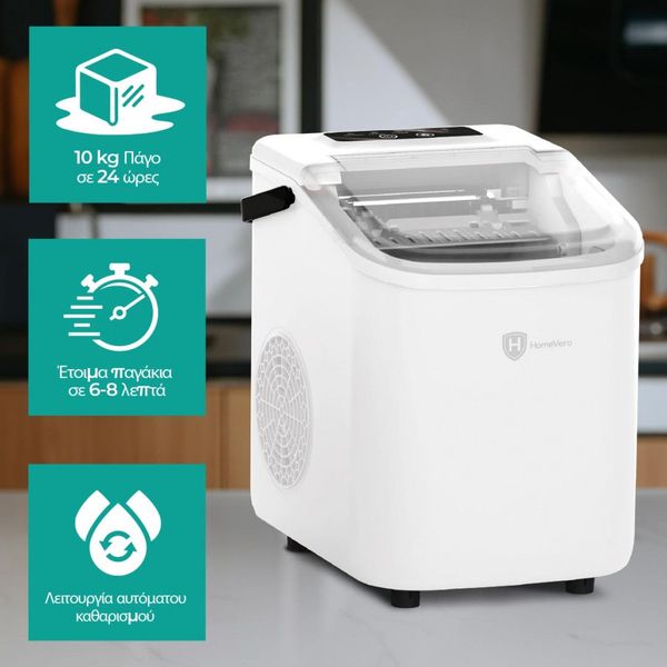 ΠΑΓΟΜΗΧΑΝΗ ΜΕ ΗΜΕΡΗΣΙΑ ΠΑΡΑΓΩΓΗ 10KG ΑΣΠΡΗ HOMEVERO HV-IM1224W